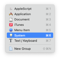 วิธีเพิ่มปุ่มลัดคือให้กดปุ่ม + ตรง HotKey Groups แล้วเลือก System (เพิ่มลดเสียงเป็น system command)